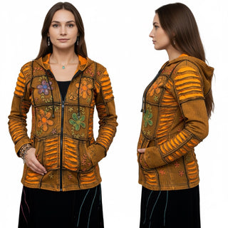 327 RJ Hand Crafted Bohemian Rib Tie-dye Brush Painted Patch Cotton Detachable Pixie Hoodie Jacket