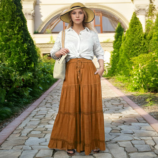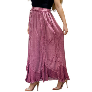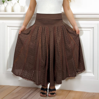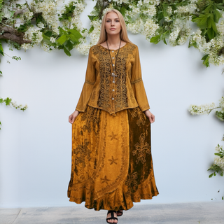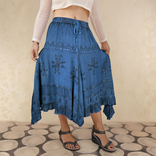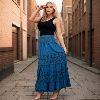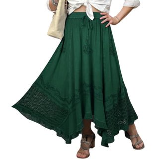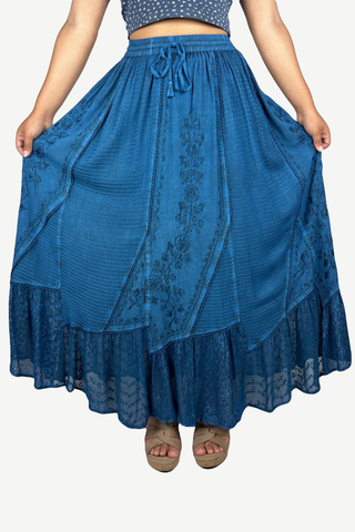 704 Skt Elastic Waistband Flare Hem Boho Skirt - Long Renaissance Embroidered Maxi Skirt