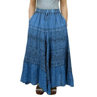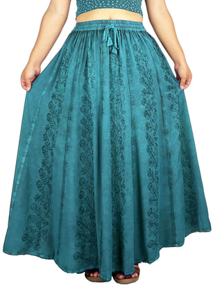 Women's Boho 715 SKT Medieval Flared Hem A Line Embroidered Long Maxi Skirt