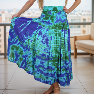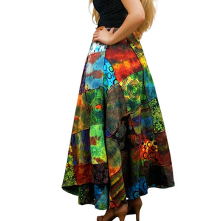 407 WS Cotton Gypsy Rainbow Flower Diamond Tie Dye Overlocked Patched Wrap Skirt