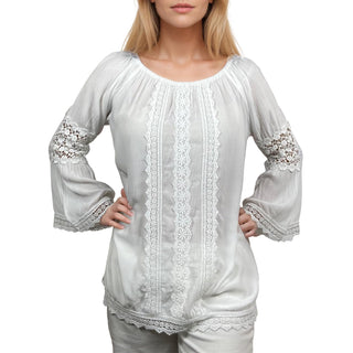 3903 B Rayon Crepe Bohemian Lace Sleeve Round Neck Summer Tunic Blouse