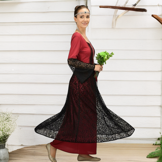 003 DR Square Neck Lace Overlay Gothic Corset Bell Sleeve Dress Gown
