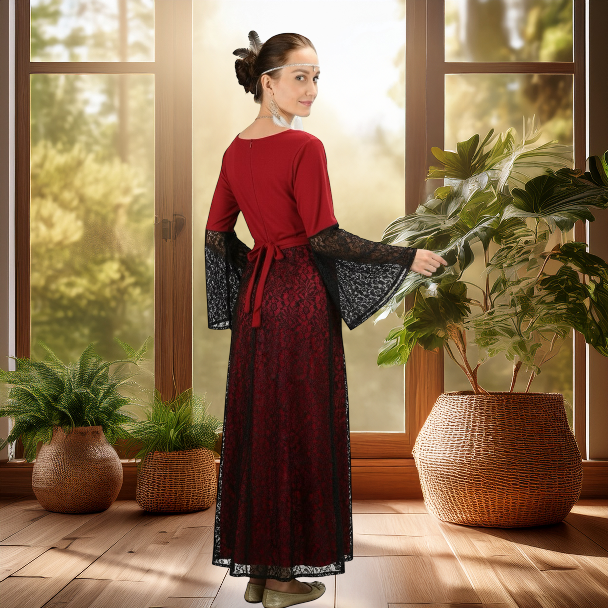 Roman Net Overlay Corset Renaissance Bell Sleeve Dress
