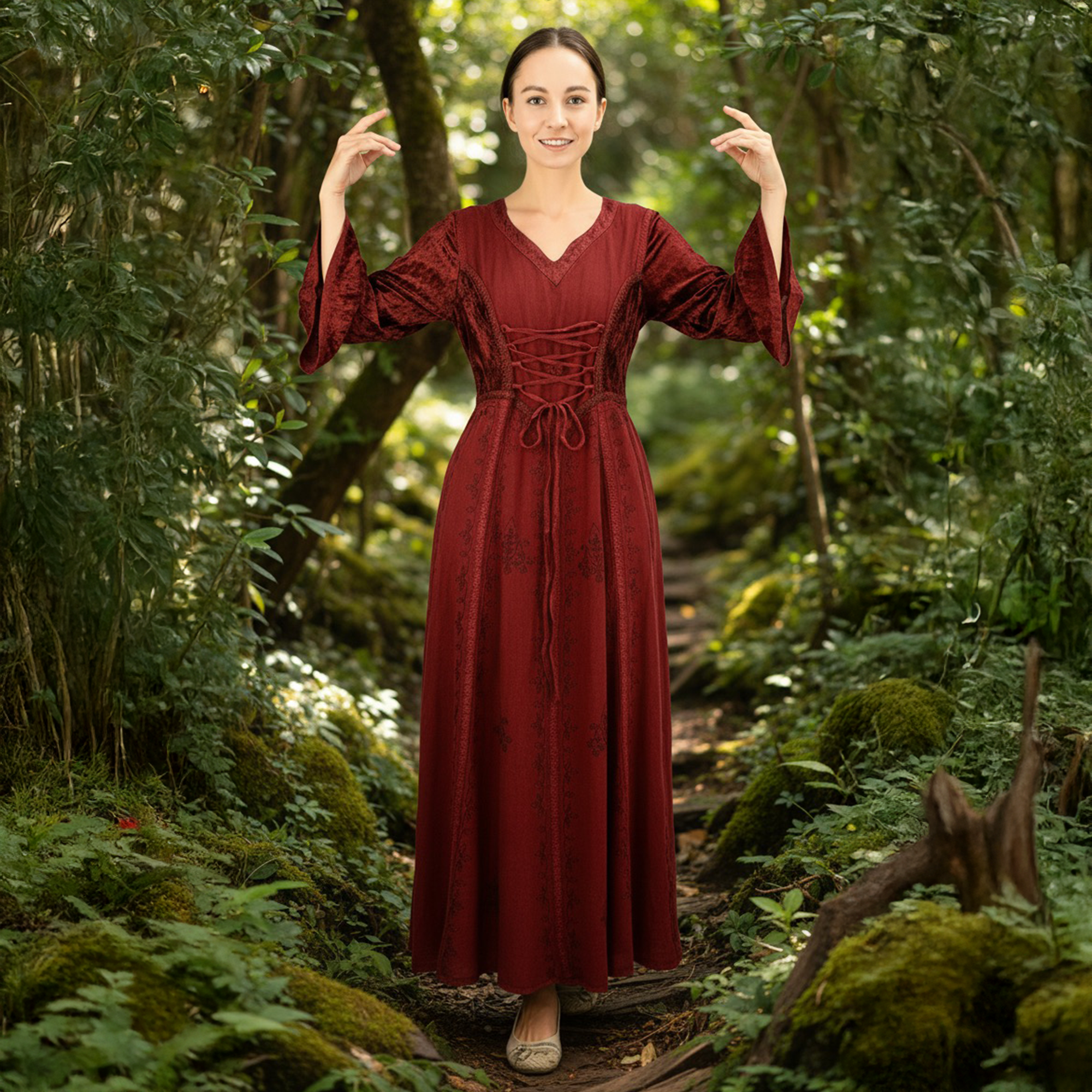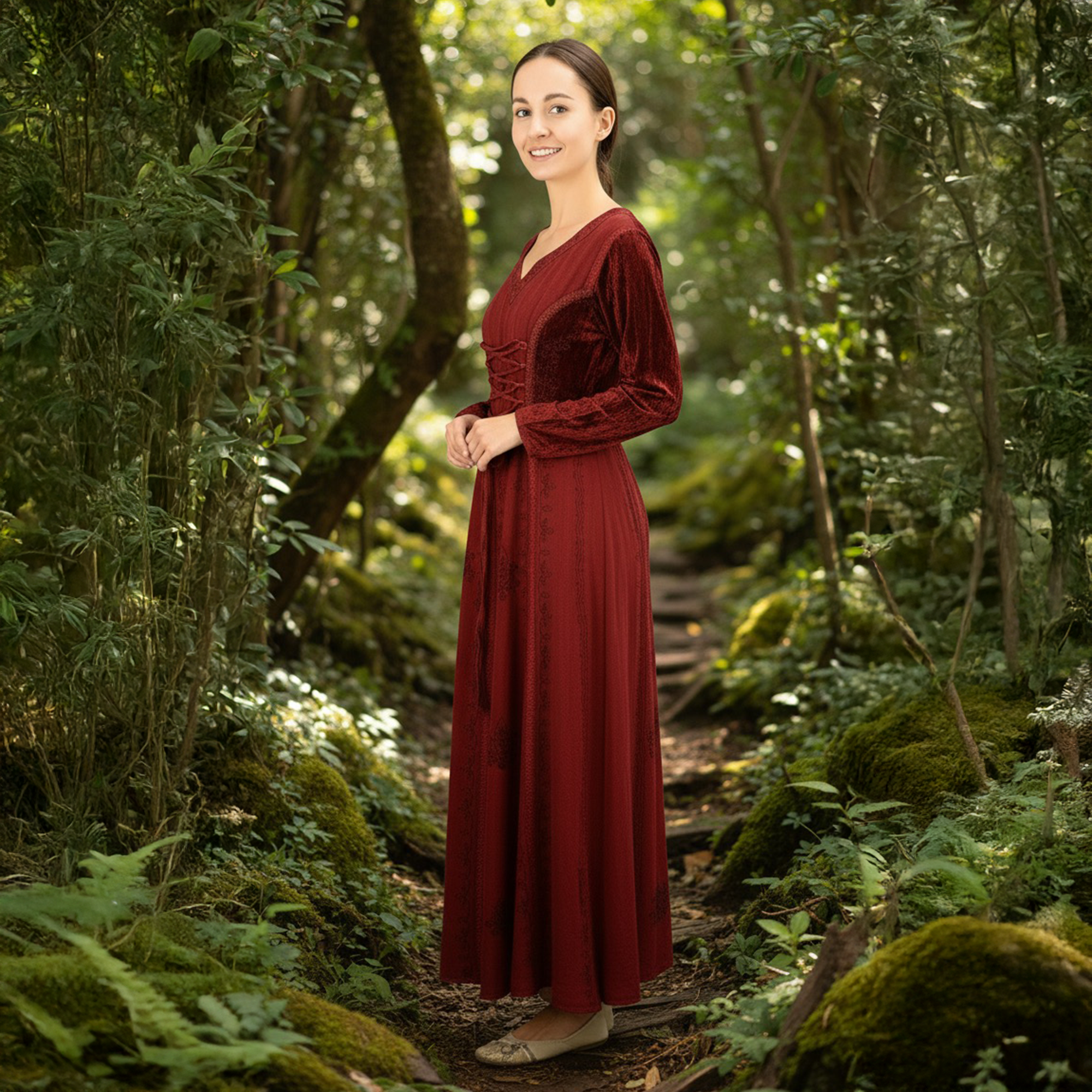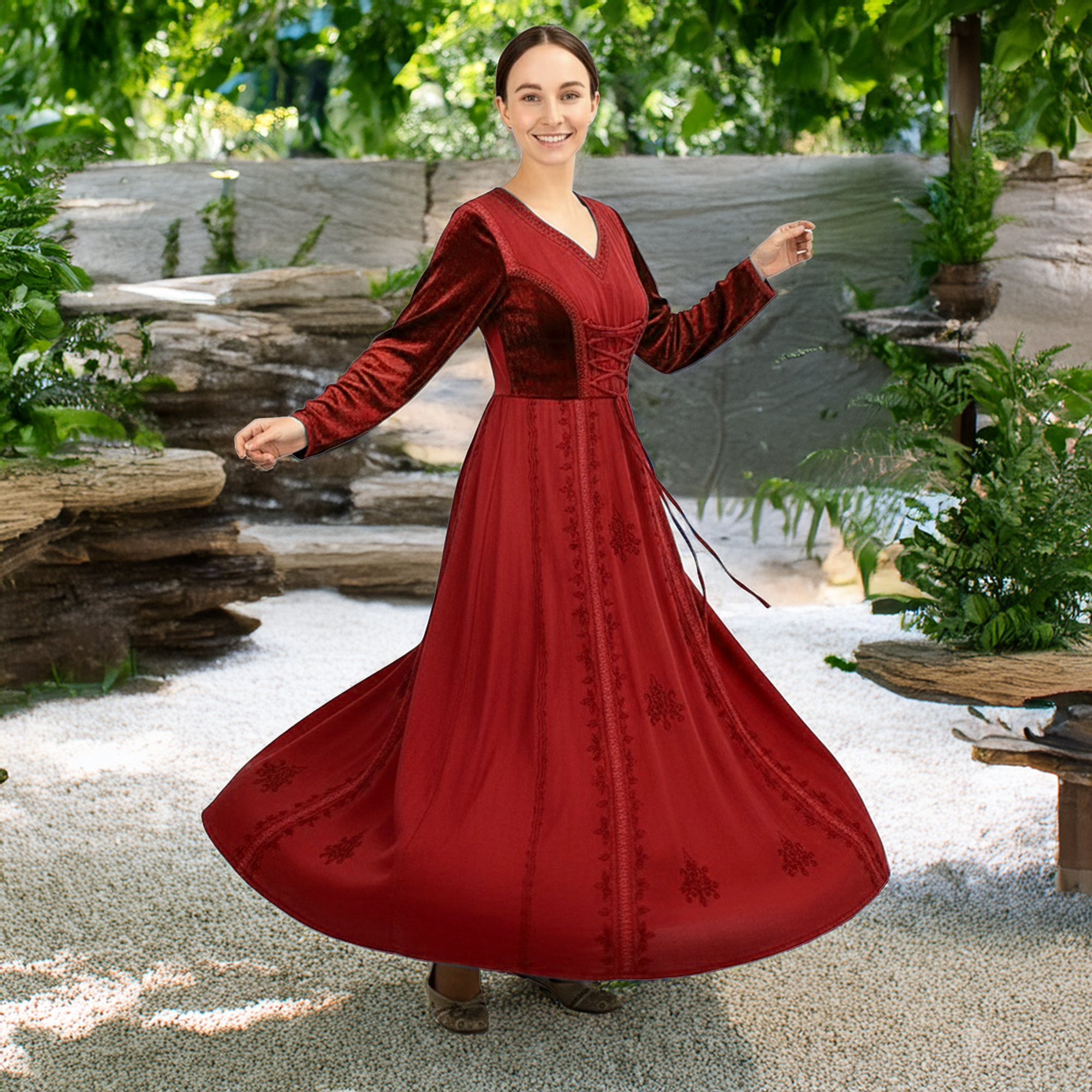 210 DR Diamond Neck Gothic Velvet Corset Embroidered Dress Gown