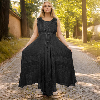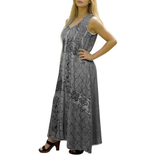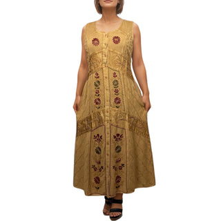 1151 DR Women’s Boho Summer Sleeveless Embroidered Button Down Sun Dress Gown