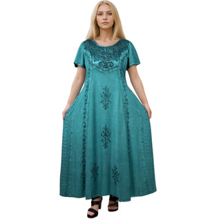 1024 DR Gothic Vintage Short Sleeve Embroidered Casual Chic Flare Dress Gown