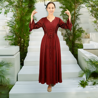 204 DR Scooped Neck Bohemian Corset Long Dress Gown