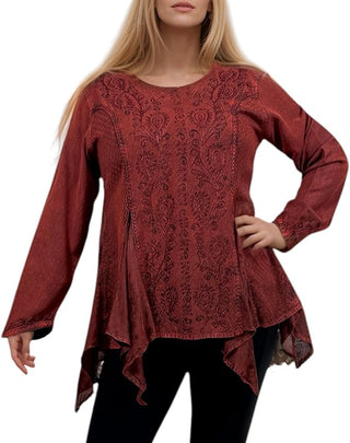 Women's Bohemian Exotic Embroidered Long Sleeve Tunic Blouse ~ 601B