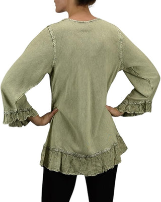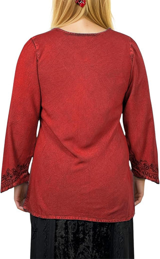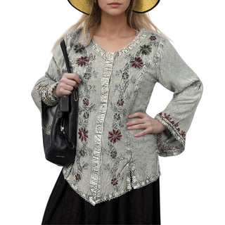 27 707 B Women's Boho Medieval Embroidered Button Down Full Sleeve Shirt Blouse