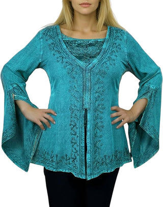 127 B Diamond Neck Embroidered Rayon Renaissance Top Blouse