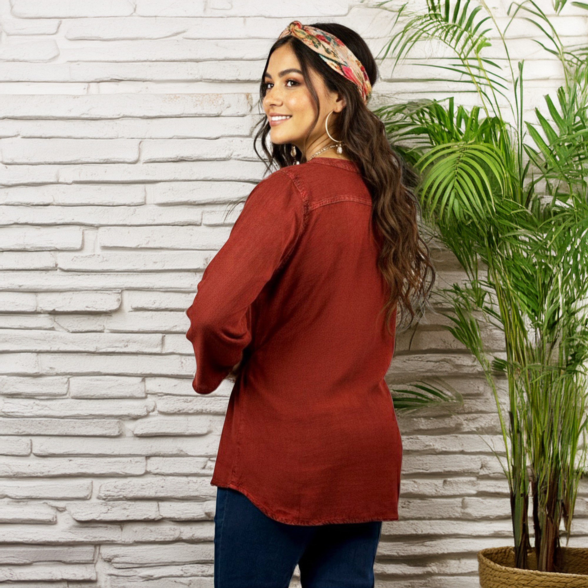 Women's Vintage Long Sleeve V-Neck Button Down Tunic Blouse