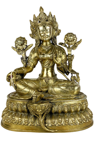 Large Brass White Tara From Himalaya Of Nepal [ Height = 18 inches; 20 lbs]