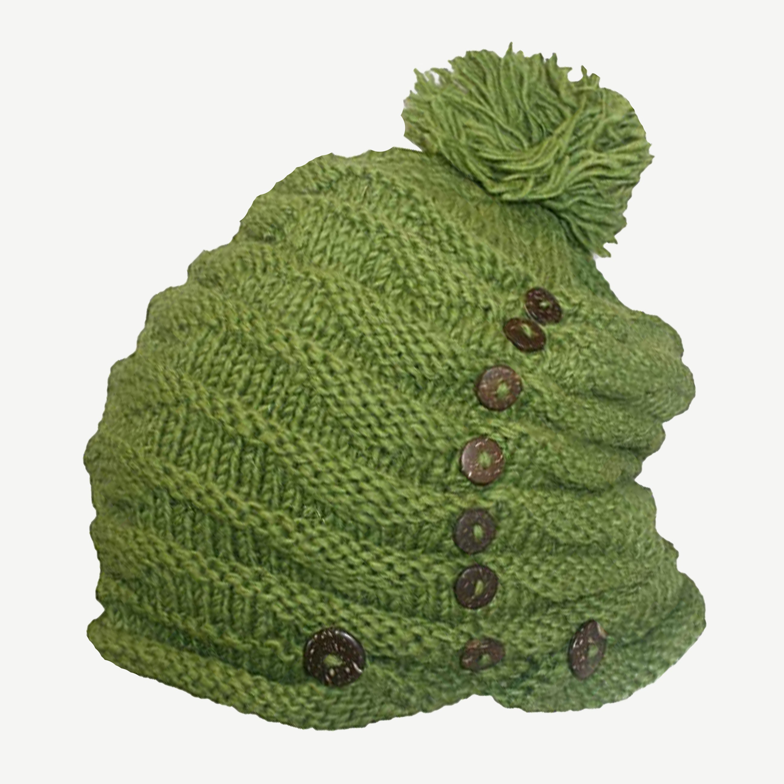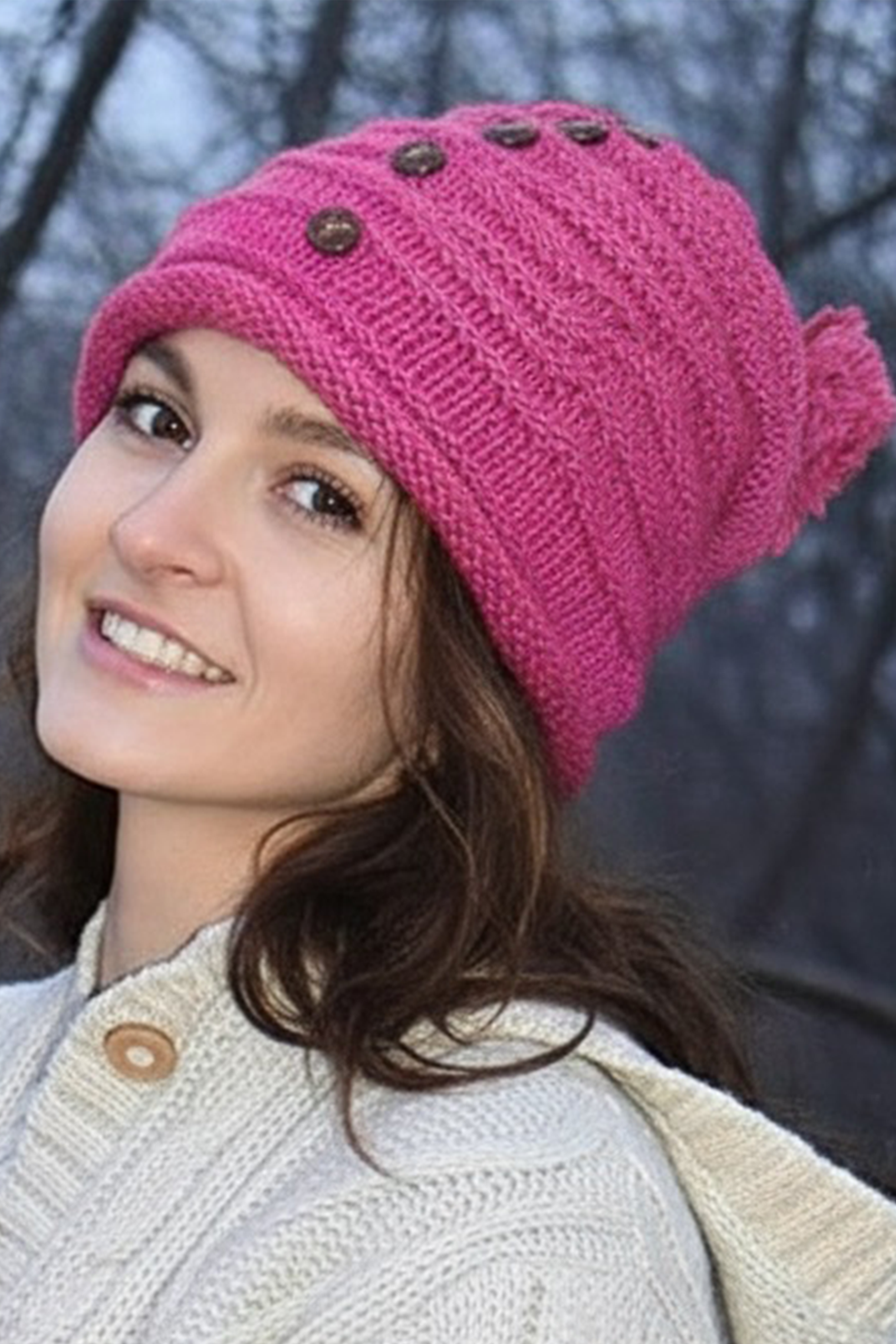 Nice and cozy oversized ribbed crochet knit slouchy beanie with buttons and matching mittens and gloves.