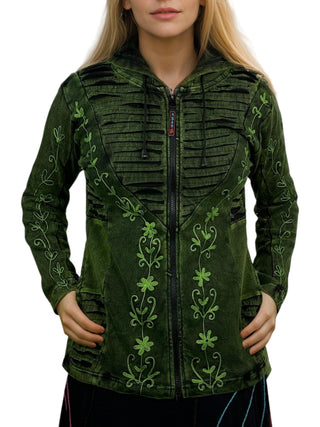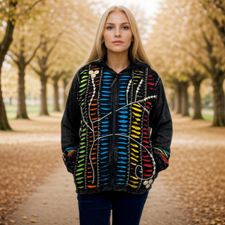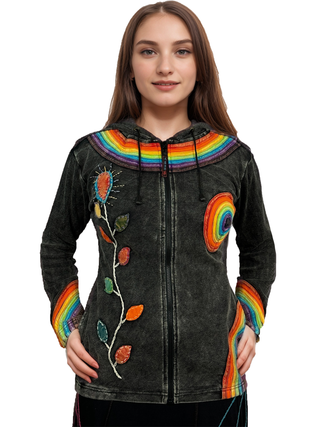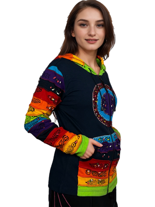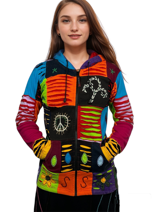 51 RJ Bohemian Multi-Colored Razor Embroidered Hoodie Sweatshirt Rib Jacket