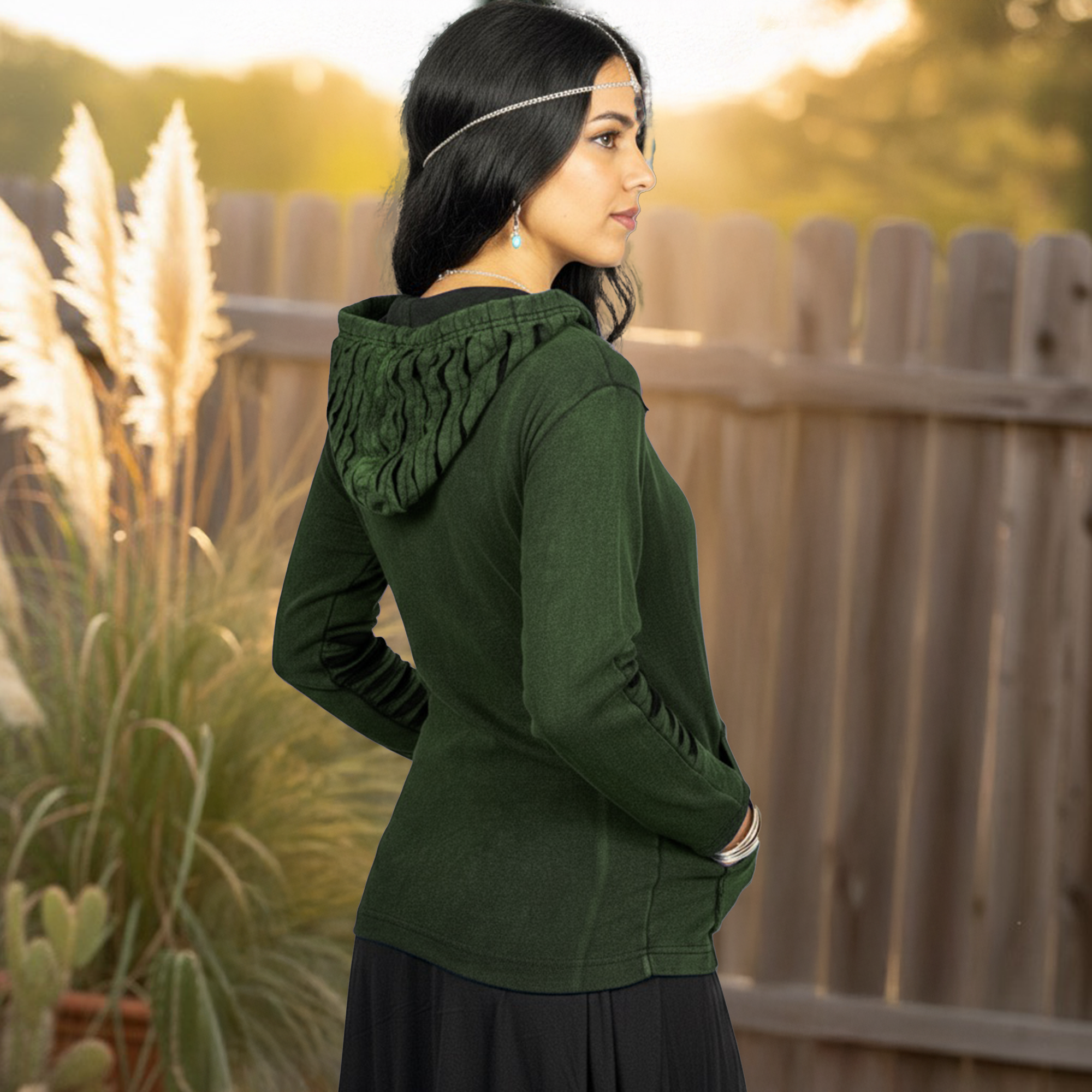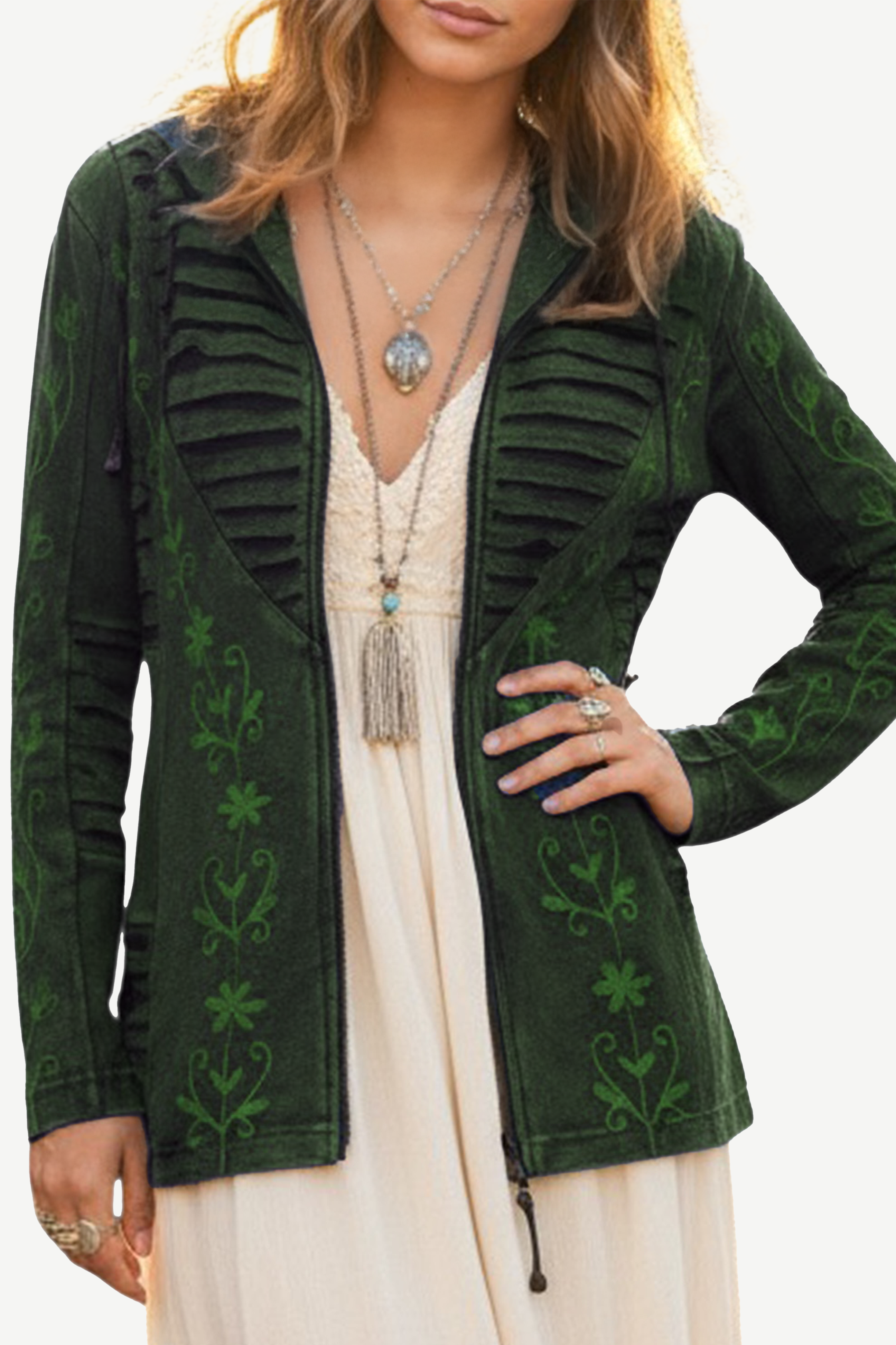 RJ 352 Denim Distressed Bohemian Razor Cut Hoodie Jacket