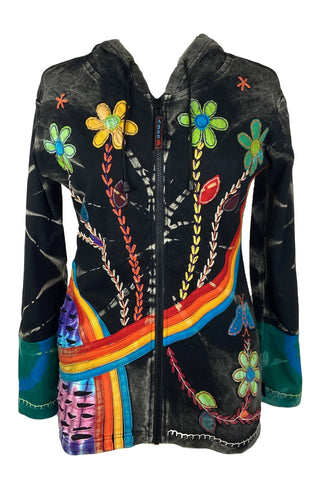 RJ 309 355 Rainbow Razor Cut Flower Stem Cotton Bohemian Hoodie Jacket