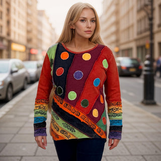 270 / 271 RB Bohemian Knit Tie dye Patched Embroidered Shirt Blouse