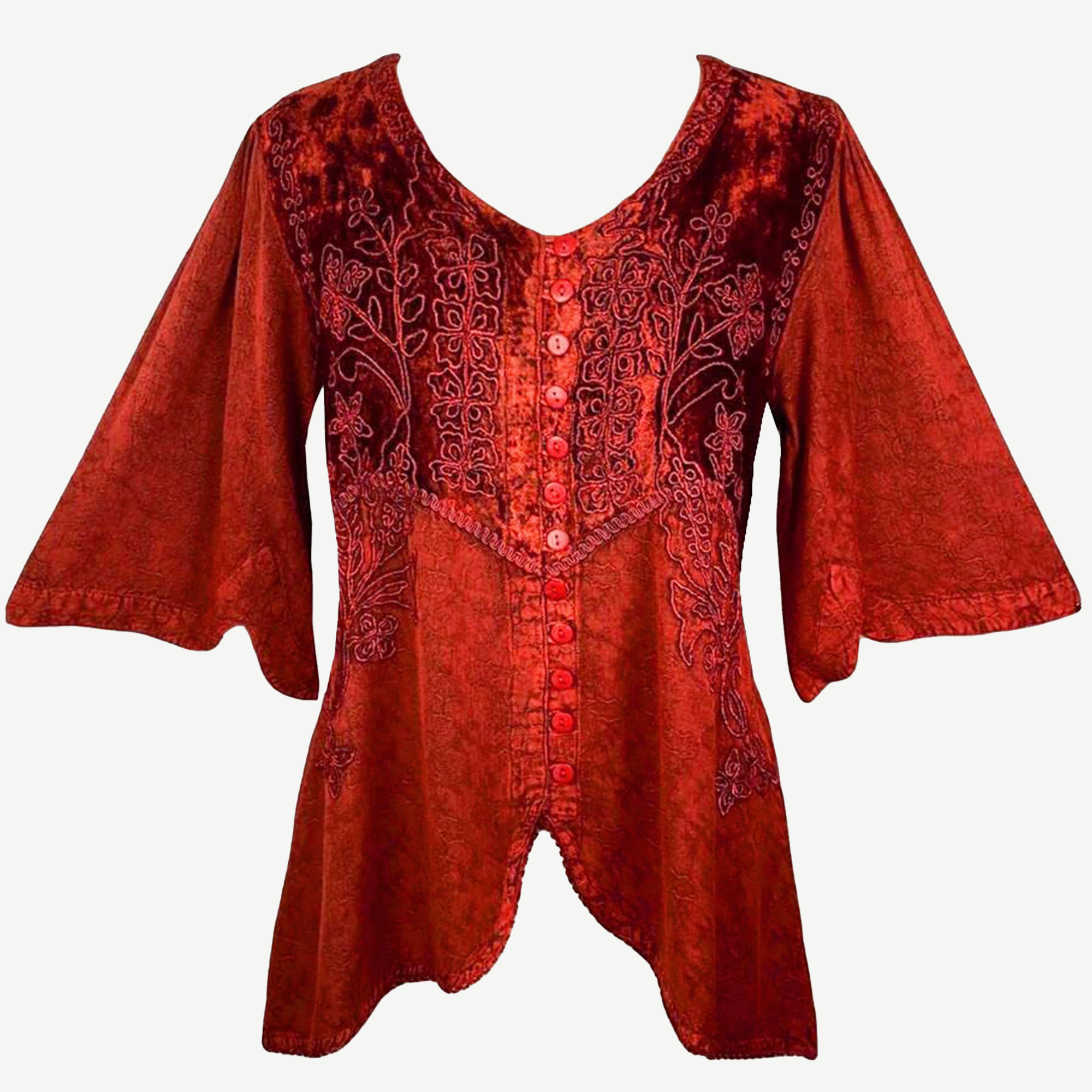 Bohemian Exotic Ari Embroidered Button Down Tunic Blouse~603 B