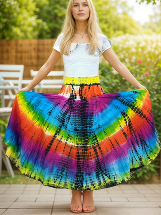 61 SKT Rainbow Soft Cotton Convertible Lined Tie Dye Gypsy Skirt Dress