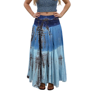 61 SKT Women’s Tie-dye Bohemian High Waist Maxi Skirt Lined Navy Brown