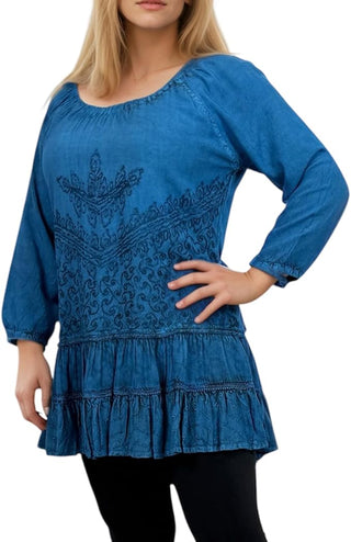 304 B Scooped Neck Ruffle Tiered Hem Bohemian Tunic