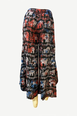 100 P Rayon Viscose Palazzo Belly Bottom Elastic Waistband Printed Pant Trouser